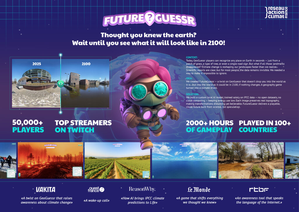 We created FutureGuessr — a twist on GeoGuessr that doesn’t drop you into the world as it is…but into the world as it could be in 2100, if nothing changes. A geography game turned into a climate shock.